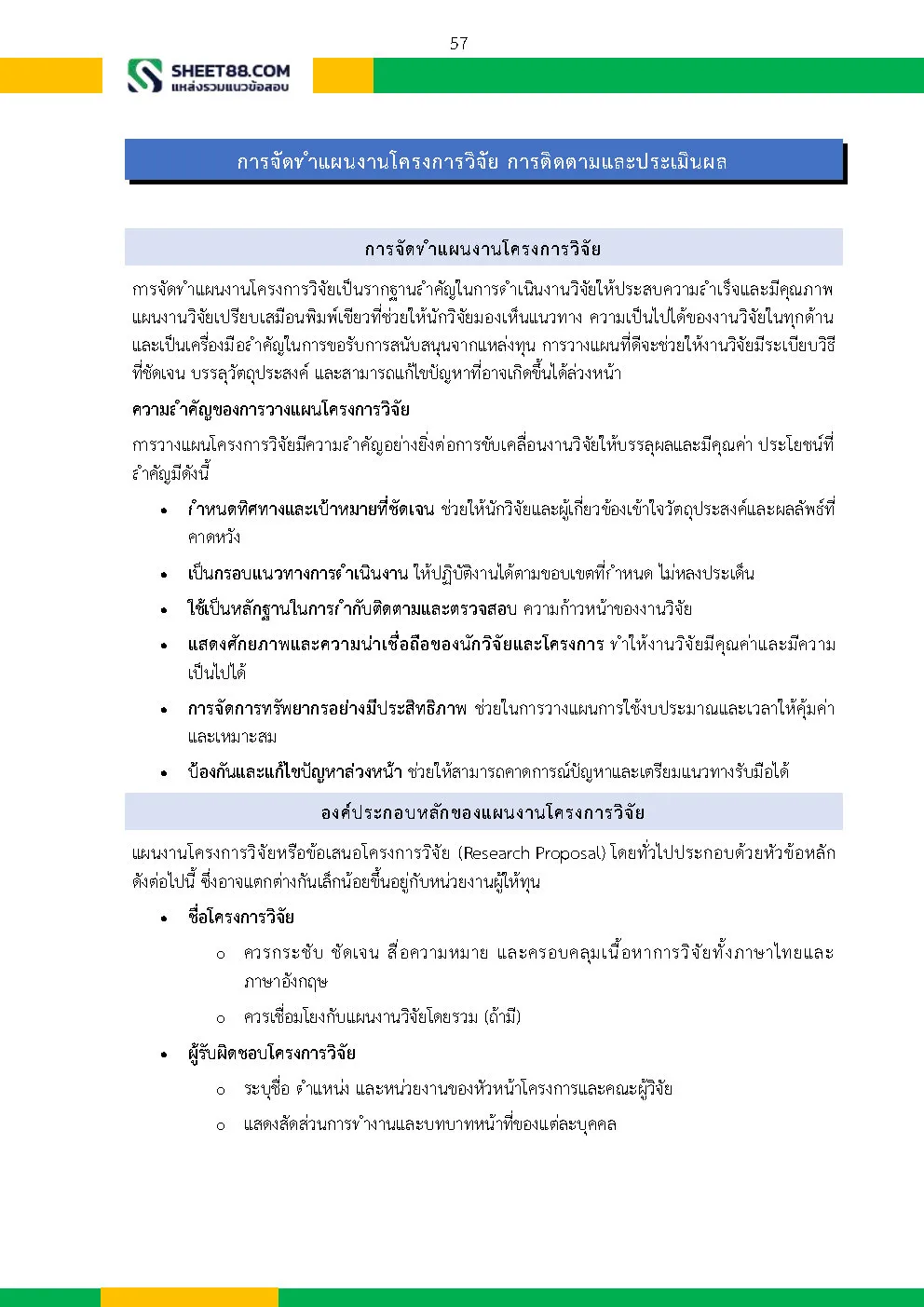 – ความรู้เกี่ยวกับการจัดทำแผนงานโครงการวิจัย การติดตามประเมินผล และความรู้