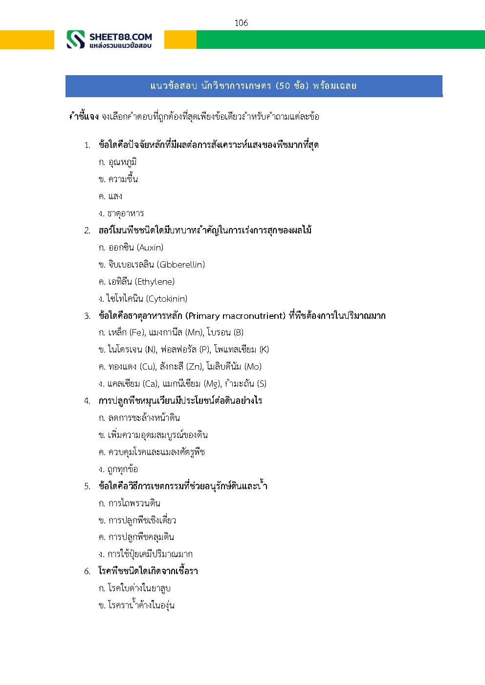 แนวข้อสอบ นักวิชาการเกษตรปฏิบัติการ ด้านพืชสวน กรมวิชาการเกษตร