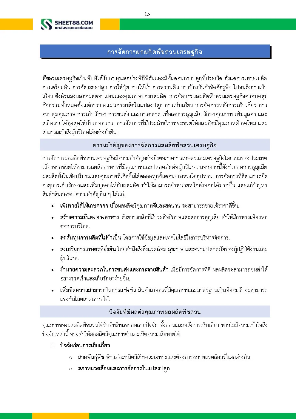 – การจัดการผลผลิตพืชสวนเศรษฐกิจ