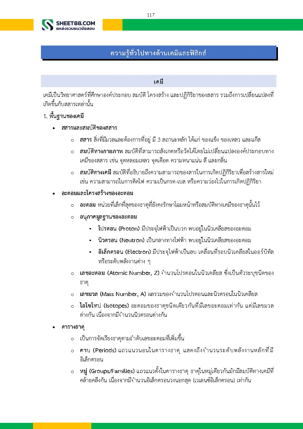 – ความรู้ทั่วไปทางด้านเคมี / ฟิสิกส์