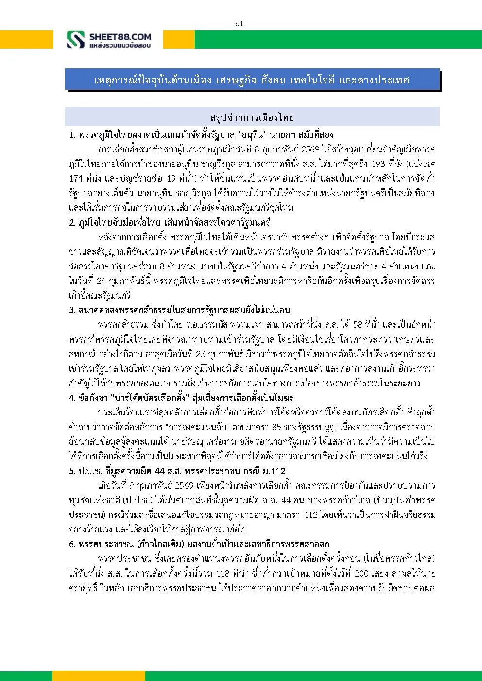 – ความรู้เกี่ยวกับสังคม เศรษฐกิจ และการเมืองปัจจุบัน